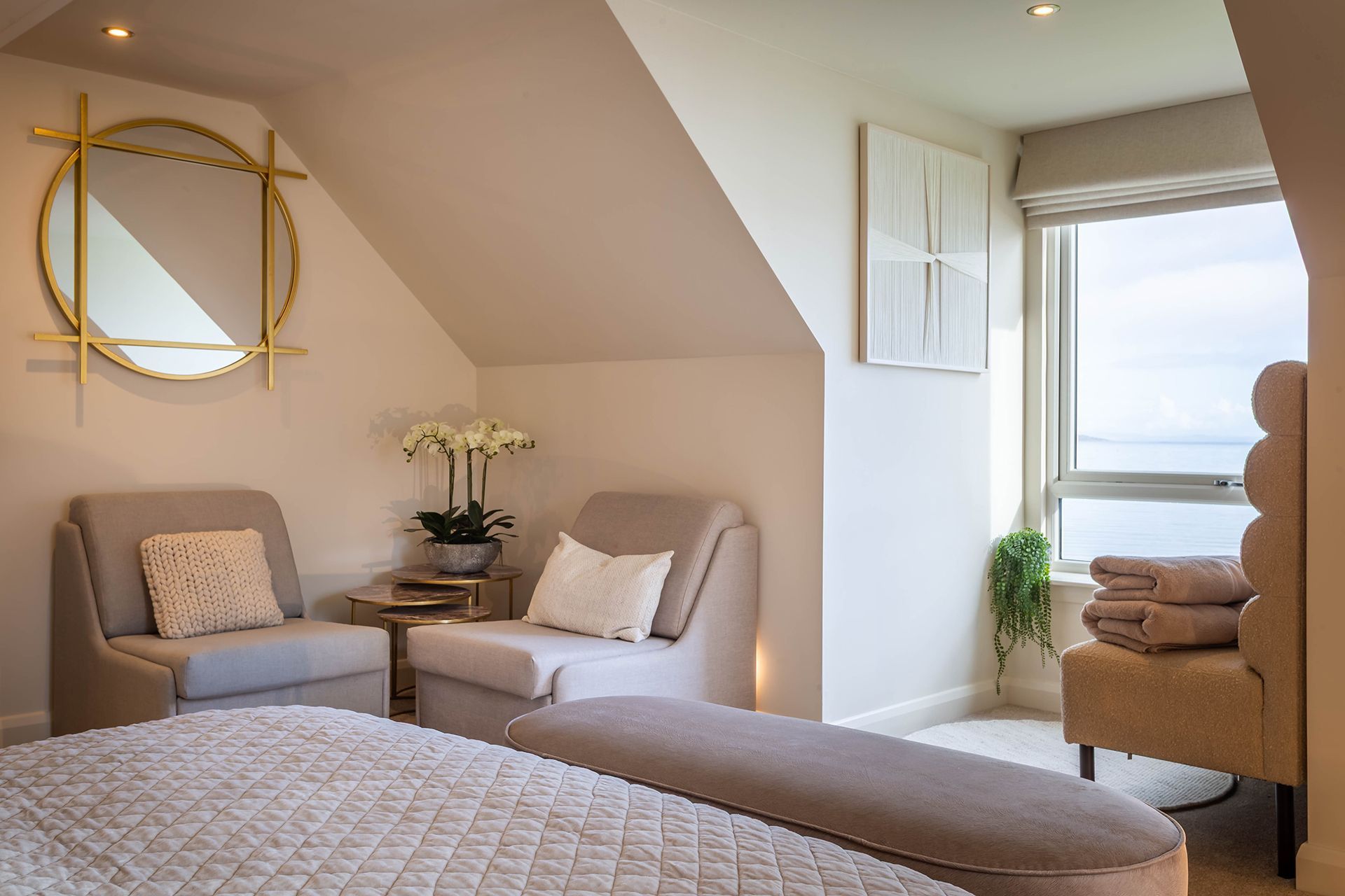 Every ensuite exudes boutique hotel luxury, with rainfall showers, bronze fittings, and Porcelanosa finishes. Guests are treated to Arran Sense of Scotland toiletries for a signature touch of island indulgence.